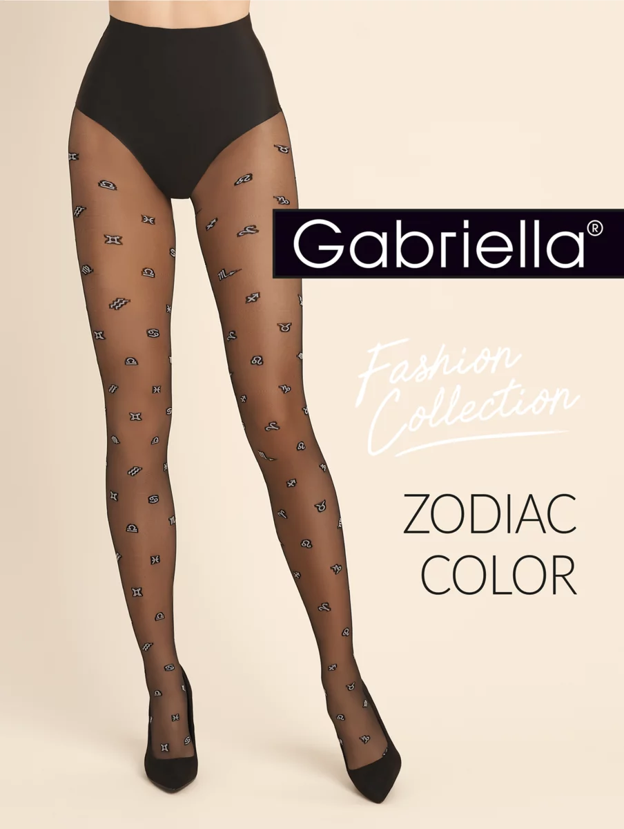 These thin black tights with an expressive pattern of zodiac signs in light colour, embroidered along the entire length of the legs, are an accessory that will appeal to ladies who keep up with fashion trends. The light zodiac signs on the black background are knitted, which ensures that the pattern will last and its colours will remain intense. The Zodiac Color tights with a zodiac sign pattern will be an eye-catching part of your fashionable outfits.
