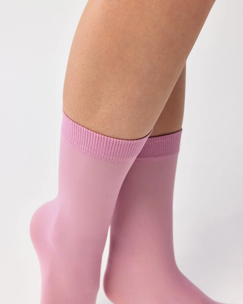 Skarpetki z mikrofibry wykonano z elastycznych włókien Lycra, które doskonale dopasowują się do kształtu stopy, otulając skórę przyjemną w dotyku dzianiną. Skarpetki gładkie mikrofibrowe dostępne są w kilku odcieniach, od klasycznych czarnych skarpetek (nero), przez beżowe skarpetki (beige), granatowe skarpetki (navy) aż po białe skarpetki (bianco) i wiele innych kolorów.